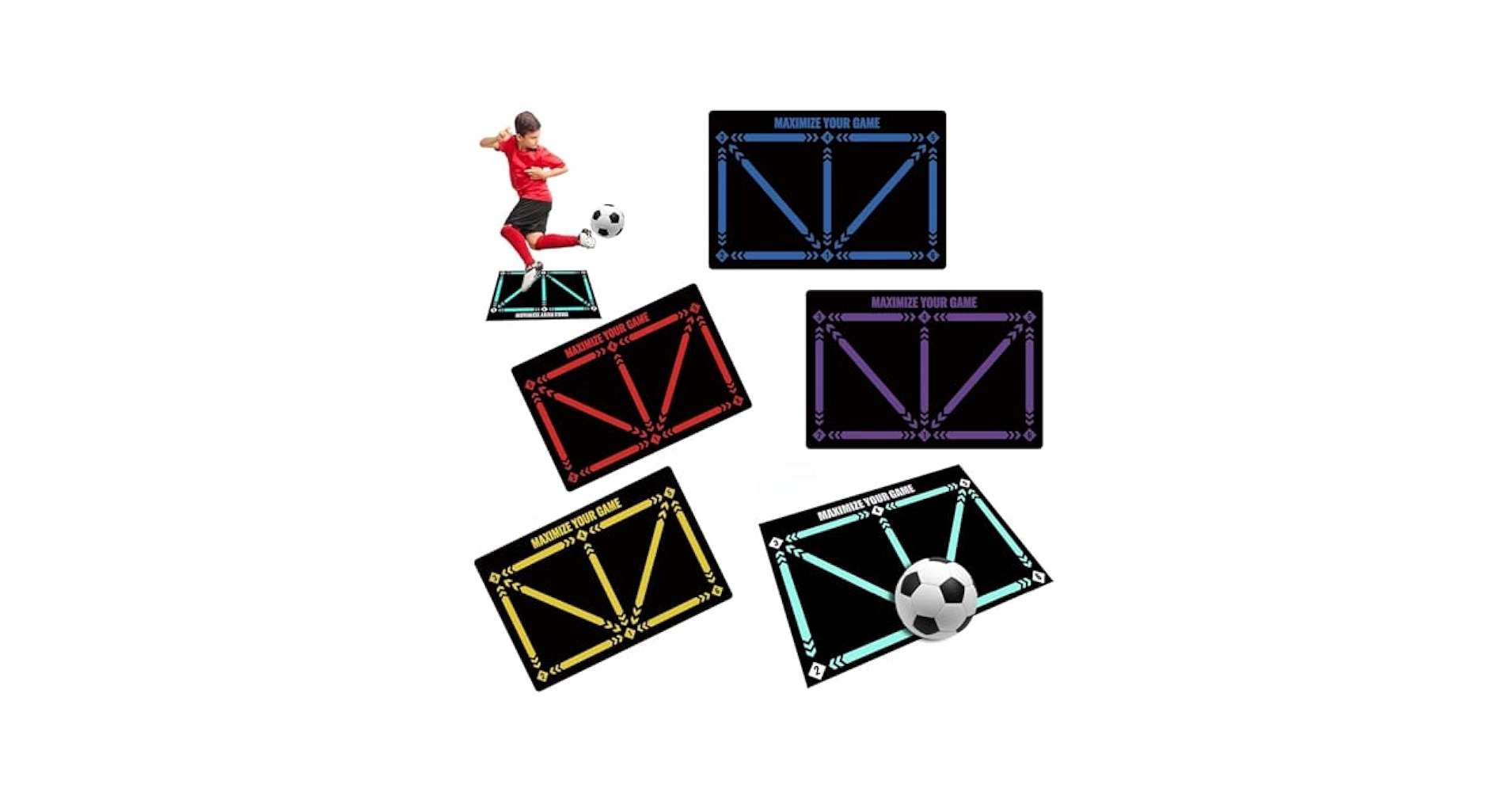 - マットの設計:SKILLS MATは、サッカーの動きに特化したデザインで、精密なボールコントロールやステップワークを効率よく習得できるように設計されています。マットにはターゲットやガイドラインが描かれており、どの位置にボールを運ぶか、足の置き方などの目安を視覚的に確認しながら練習することができます。